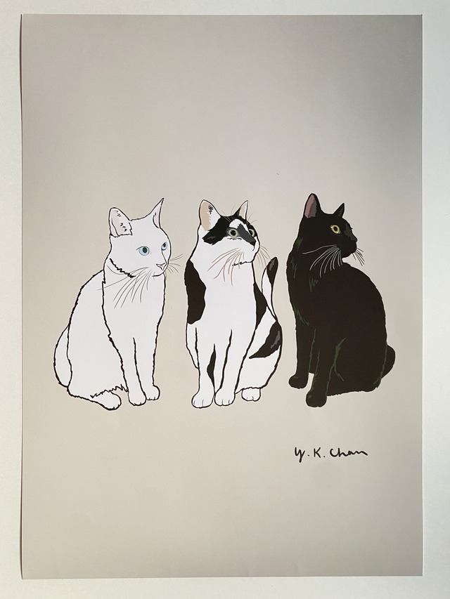 私が猫のイラストを描くようになった初期の作品がポスターになりました。 なんとも言えない猫たちに表情、そしてメー目力がお気に入りの作品です。 表面はマット仕上げです。 光のあたり方で、現物と少し色味が違って見えている場合があります。 ご希望があればA2サイズを製作することも可能です。お気軽にお声掛けください。 このイラストが入ったトートバッグは淡路ワンニャンクラブさま応援企画商品として販売中です。 その他詳細 送料無料!! サイズ... A3(297mm x 420mm)とA4(210mm x 297mm) *必ずオプションよりサイズをお選びください ポスターのみの販売で額はついていません。 Peaceful Smileオリジナルポスターです。 Illustration by Yuki K. Chan 世界にたったひとつの我が子のポスター(どんな動物でも大丈夫)も製作します。 お気軽にお問い合わせください。 ------------------------------------------------------------------------ 当店は、売り上げの大部分を助けが必要な犬や猫などの動物を救うために寄付しています。 (寄付先などはインスタのストーリーズに掲載しています。@peacefulsmileinterior) 小さな命を救う小さなお店Peaceful Simleは、店主ひとりと猫11匹がデザイン製作している作品を販売し、その売り上げの一部を昼夜問わず小さな命を助けるために活動されている保護団体に寄付しているお店です。 世界にたったひとつの「うちの子ポスター」だったり、ハンドキルティングを施したインテリア雑貨だったり、時々ハワイアンな作品などサステナブル に配慮したおうちで使える生活が楽しくなるようなものを作っています。 人と動物が幸せに暮らせるよう願って、今日も山のアトリエで1人と11匹で製作に励んでいます。 あなたのお気に入りのアイテムを見つけて小さく尊い命を一緒に救いませんか。 アート作品です。手作りの作品となりますので多少のゆがみなどはご理解ください。 お客様のご都合により返品交換の際の送料は、ご負担いただきます。 当店は、配送中の破損などに対して一切保証しかねます 小さな命を救う小さなお店Peaceful Smileやってます。 ひとつでも多くの小さな命が救うためにかーさんと11匹の保護猫は、山の自宅で今日もコツコツ製作しています。 Peaceful Smile は材料費、運営費を除いたほぼ全ての利益を過酷な外の世界で必死に生きている犬や猫などの動物を救うため保護活動(団体)に寄付しているお店です。 当店の製品は、地球上のすべての生き物と共有している地球の未来のためにサステナブルやアップサイクルを考えた作品、そして包装となっています。