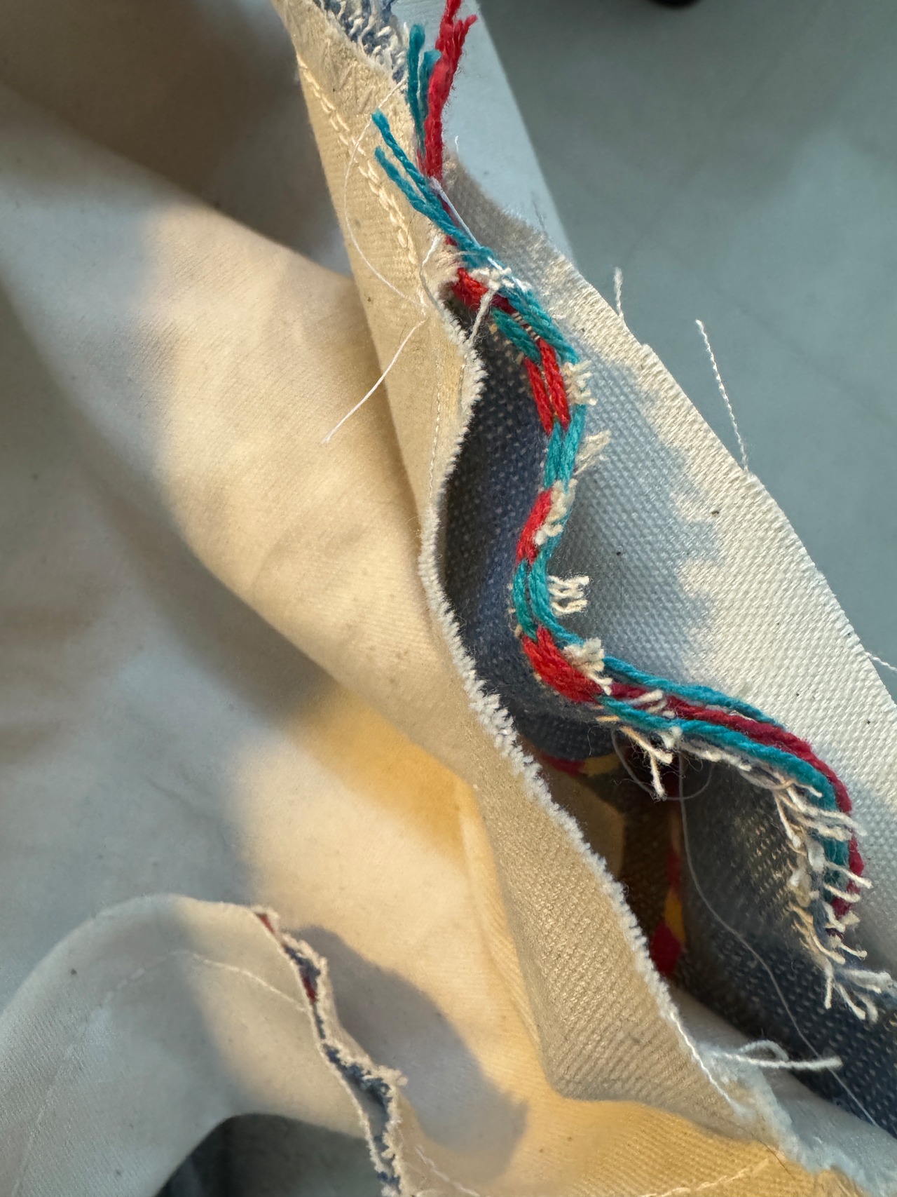 今回の布は、少し爪が引っかかりやすいデザインになっているので、ほつれる可能性があります。穴が空いた時に中から綿が出てこないように、このシリーズのみ、二重に布を使っています。(最後の写真参照)「そんなことよりデザイン重視!」という方にぴったりです。
