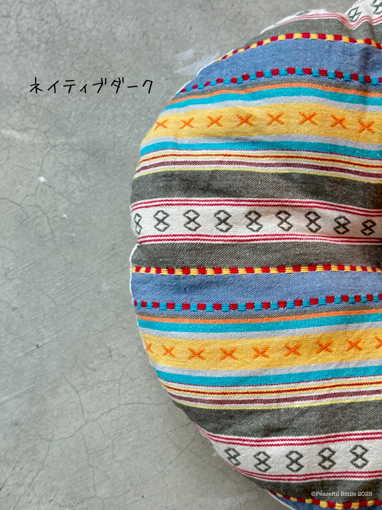 大人気の猫と小型犬ぴったりなまぁるくてふかふかな手作りクッションに可愛くてかっこいいネイティブ調の新色が仲間入りしました。