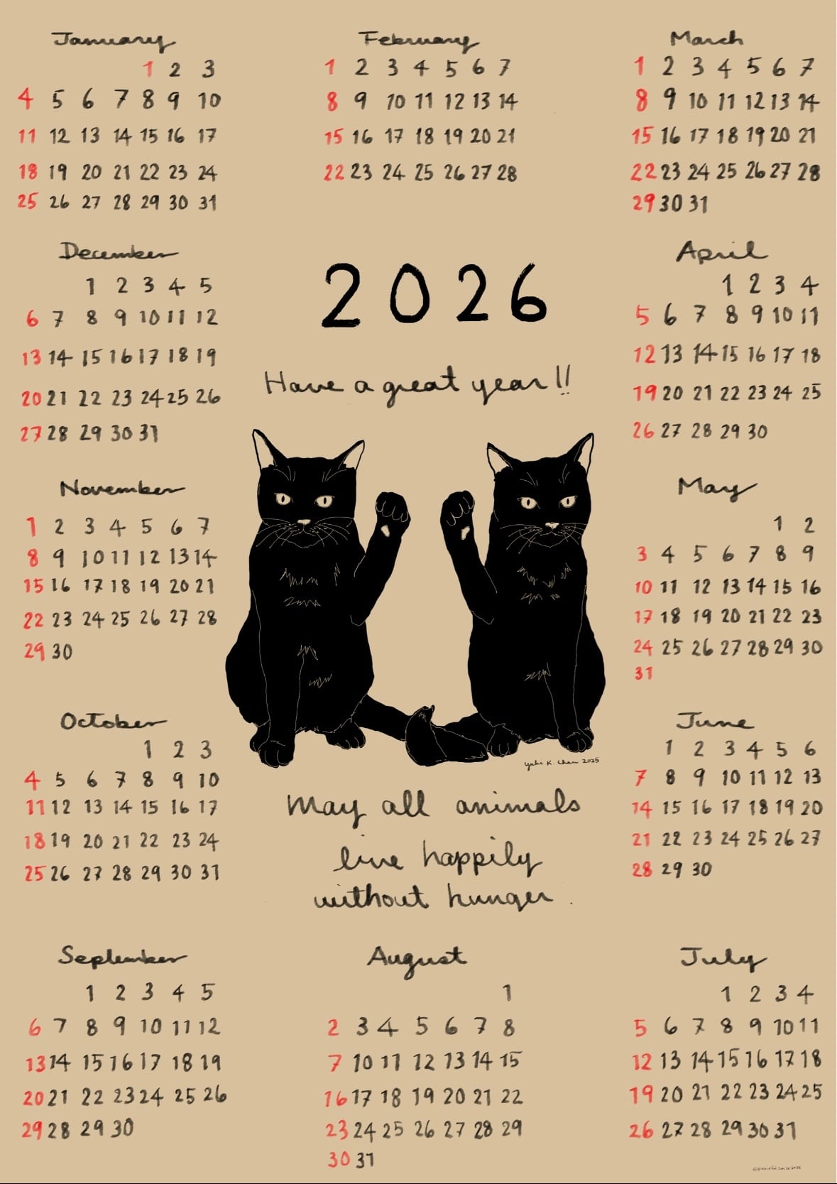2026 カレンダー 招き猫
