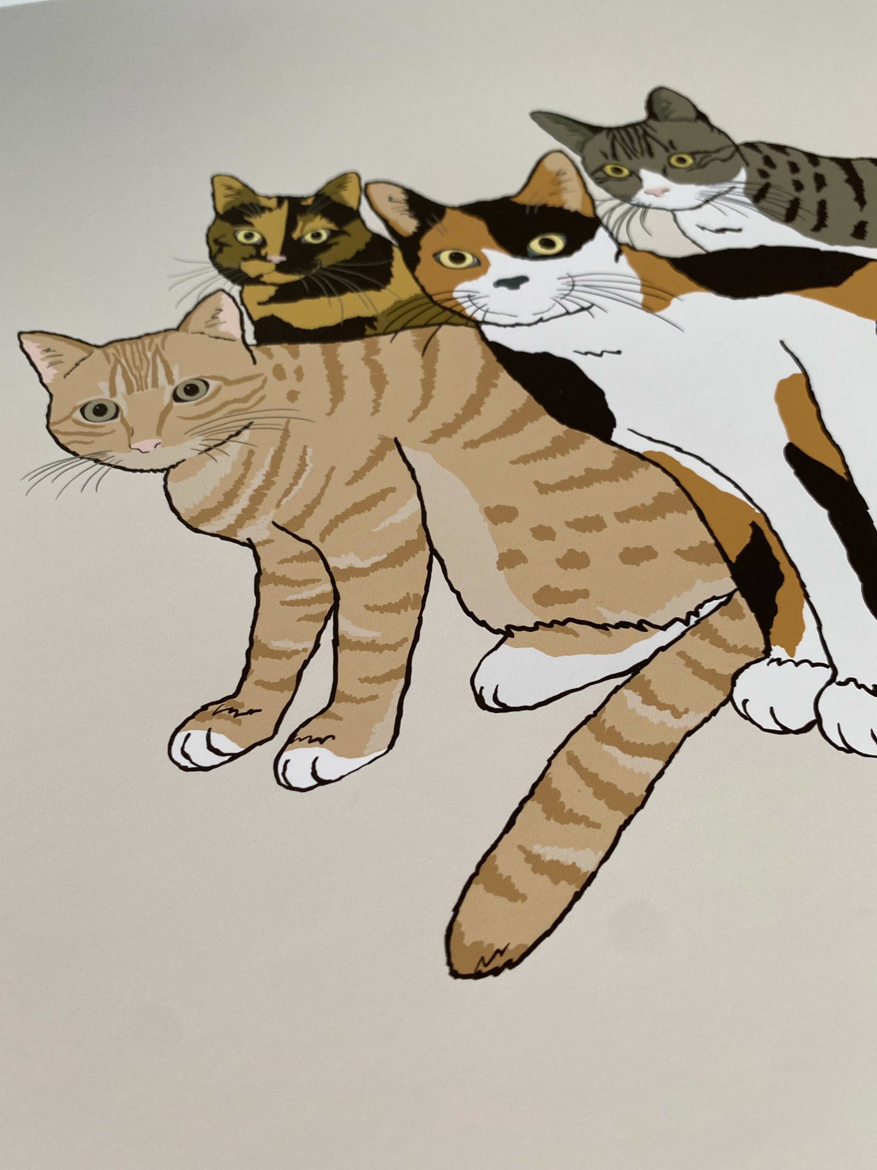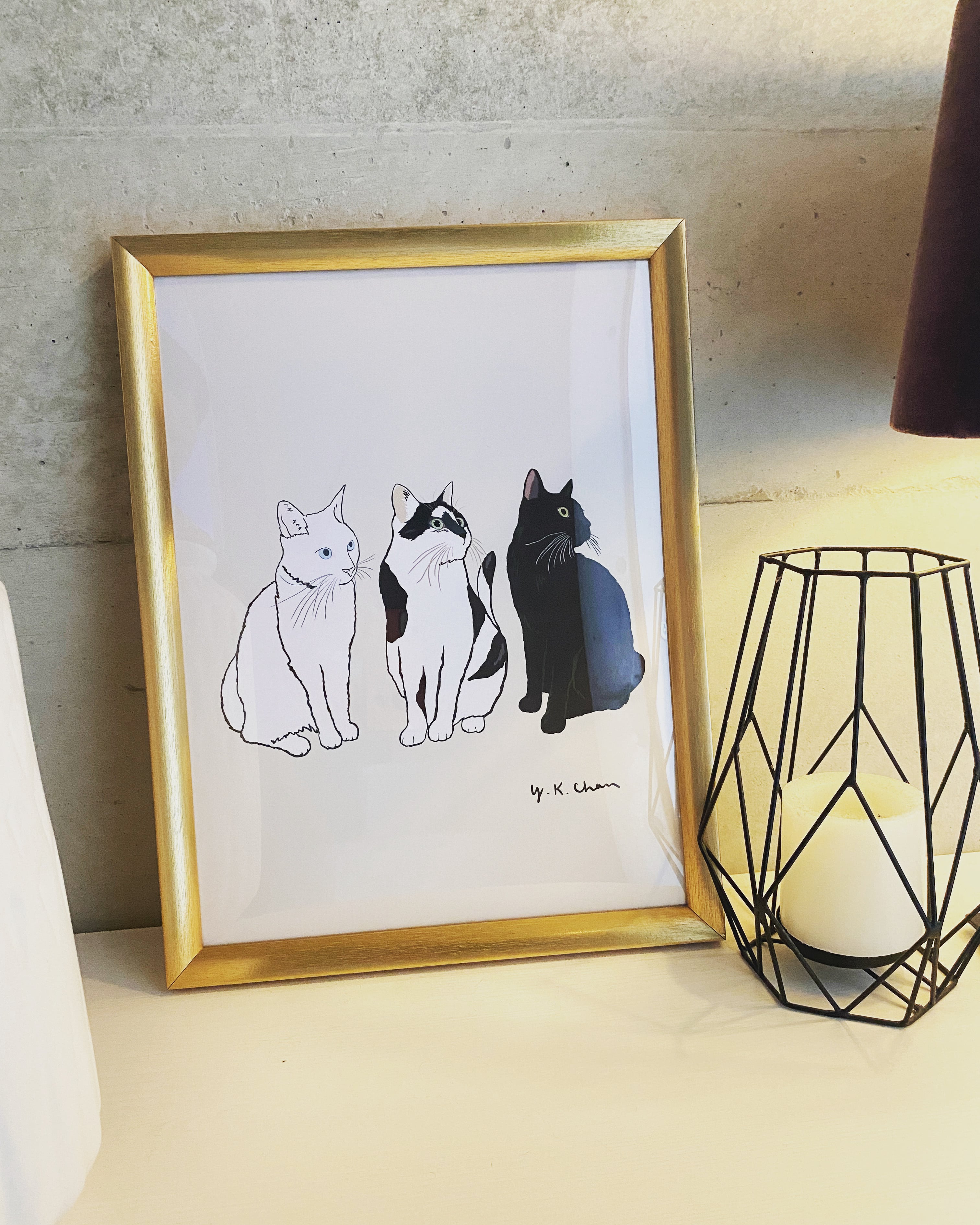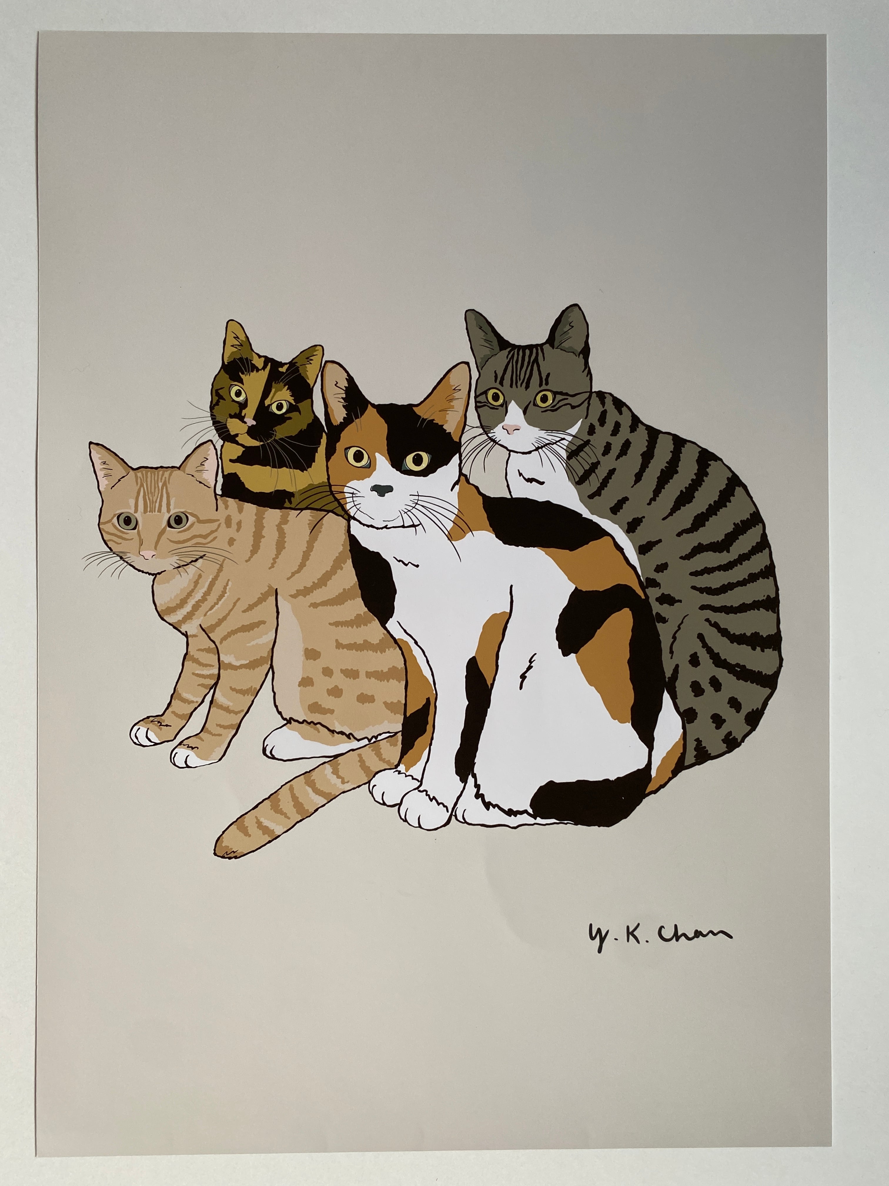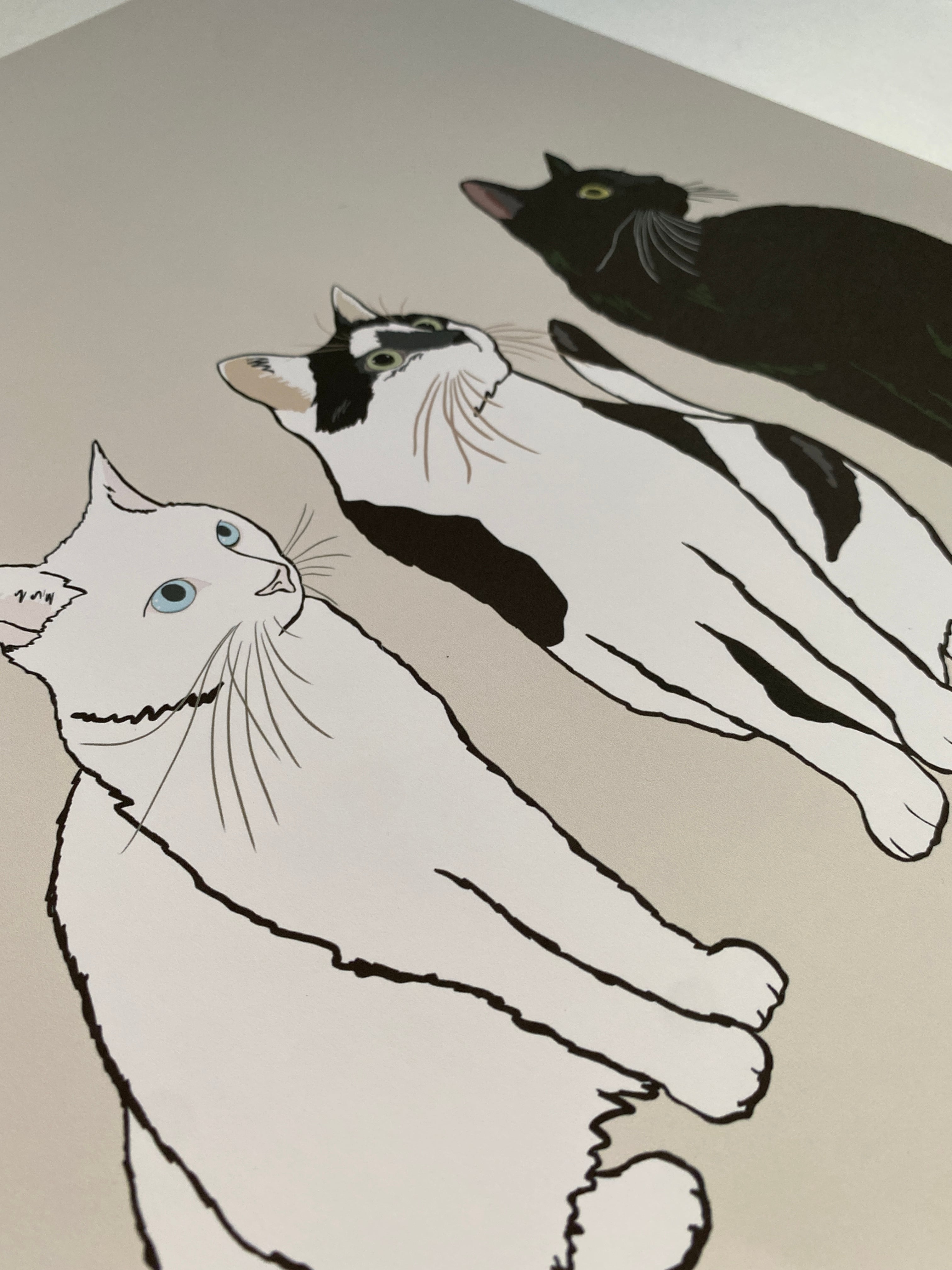 なんとも言えない猫たちに表情、そしてメー目力がお気に入りの作品です。