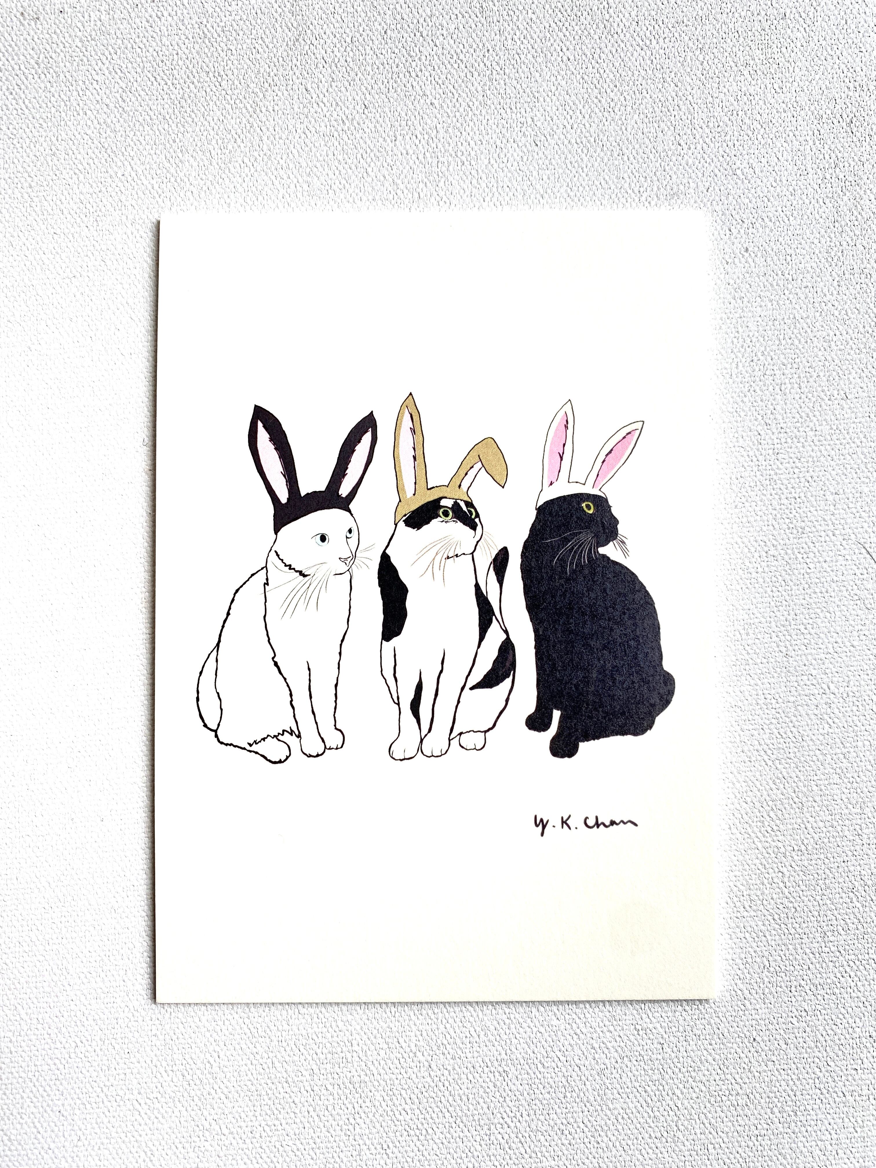 猫たちの表情とミスマッチなウサギの被り物のギャップが可愛い!