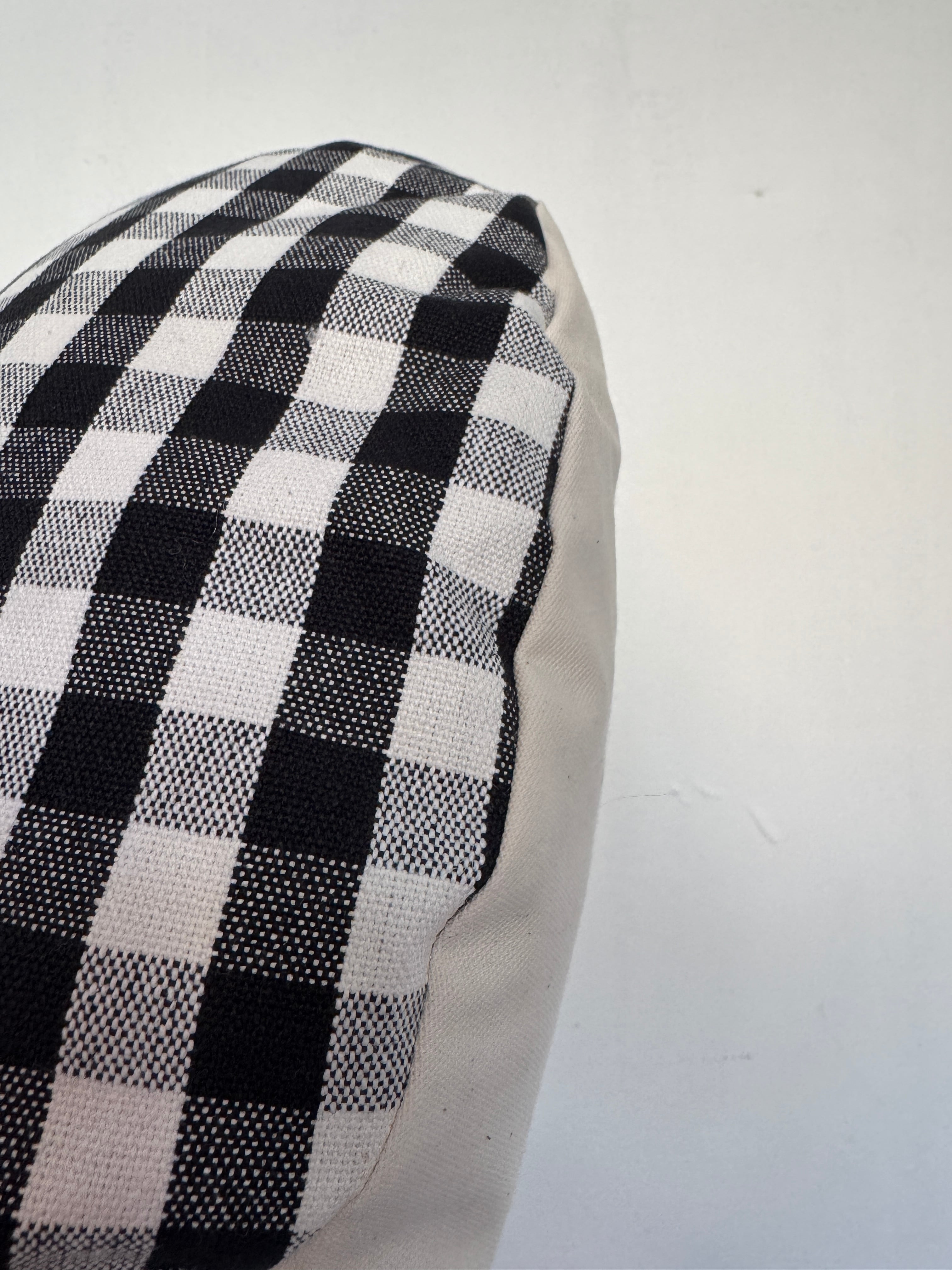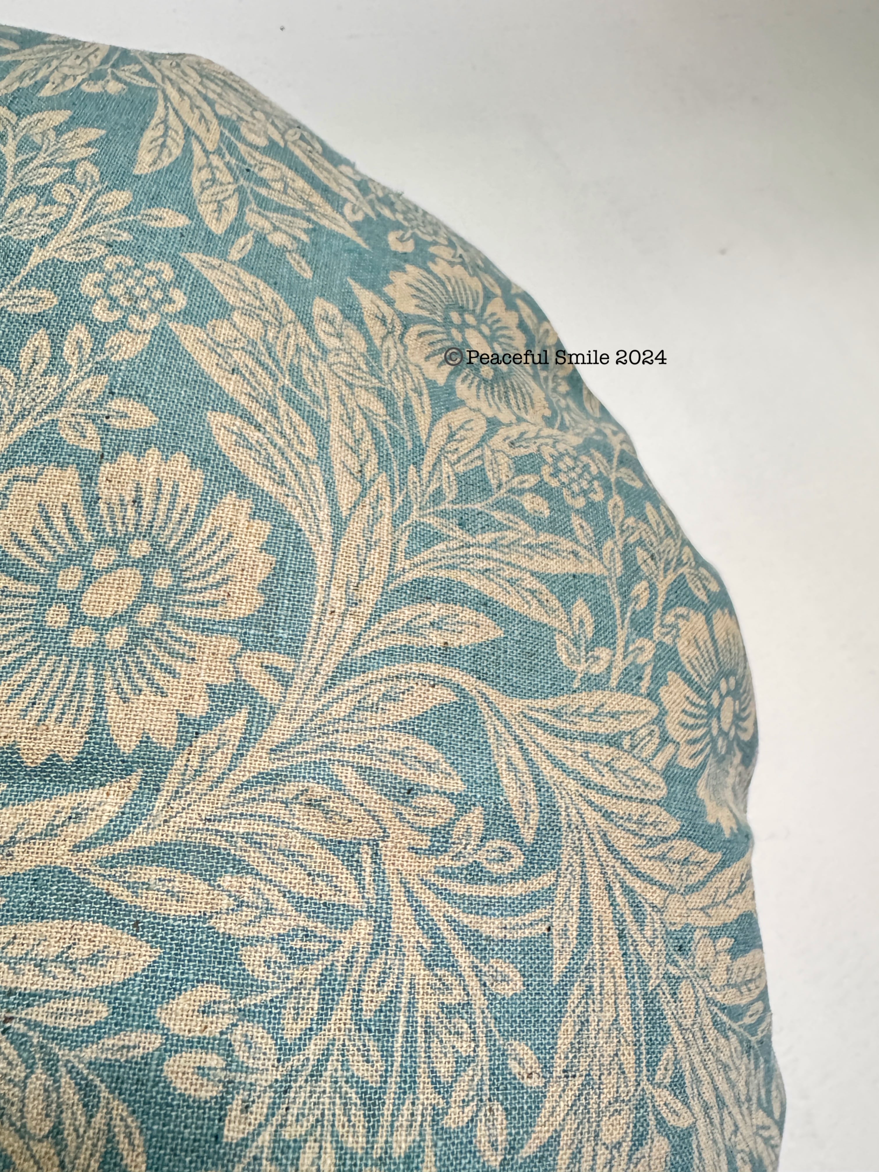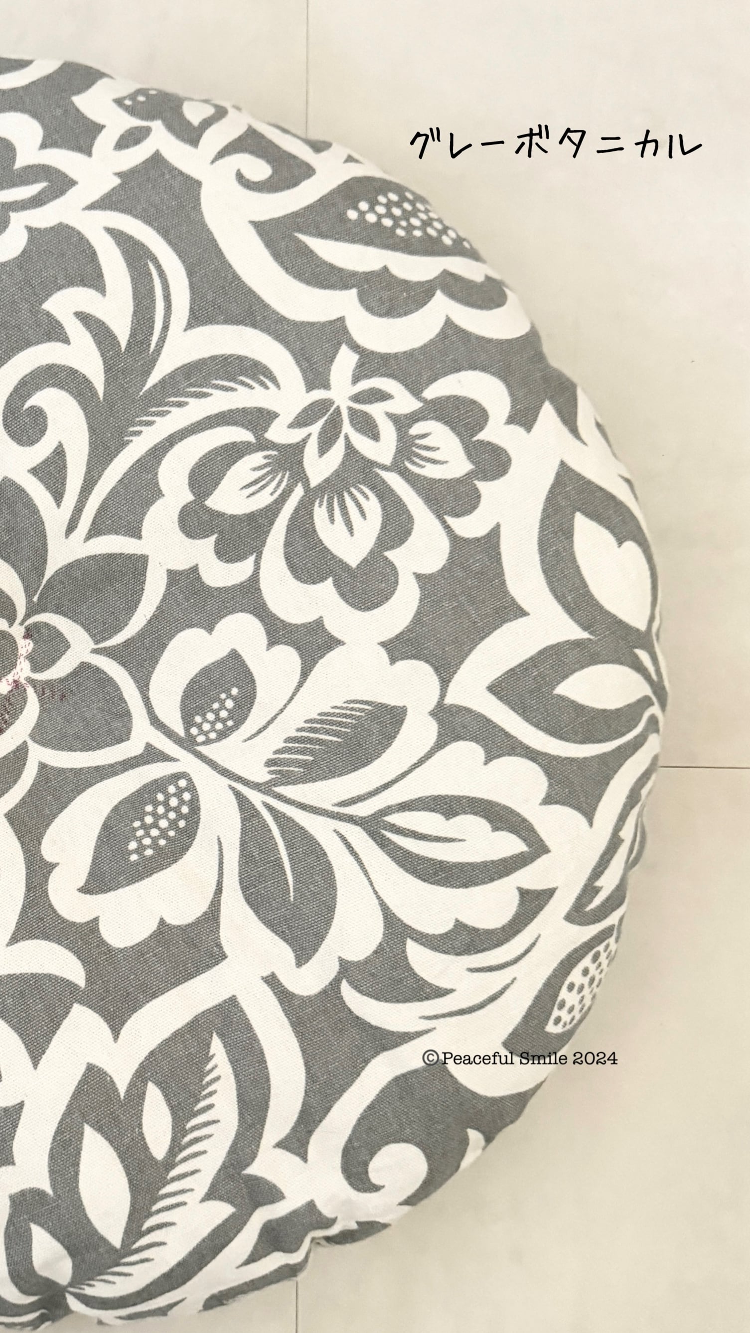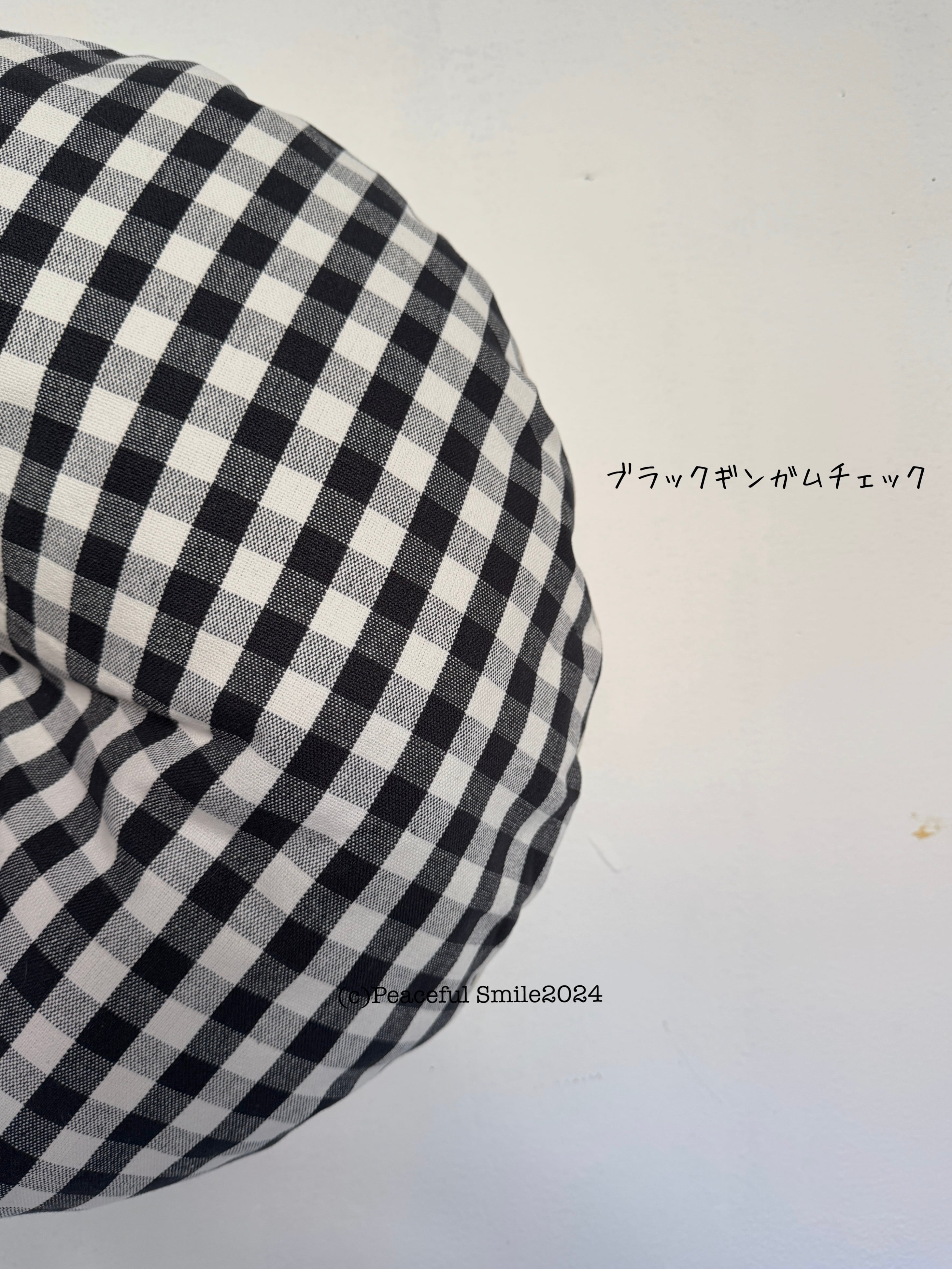猫店長が写っているクッションの中央にはボタンが付けてあるのもありますが、誤飲の危険があるため、実際の作品には付いていません。代わりにハンドステッチで➕に縫い、窪みを作っています。そして、綿の量をかなり増やしているので、写真よりもっとふかふかで厚みがあります。(他の写真参考)